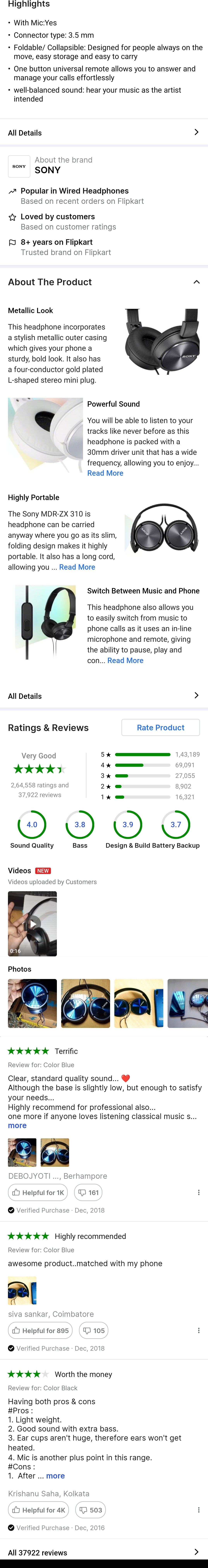 SONY 310AP Wired Headset (Black, On the Ear)